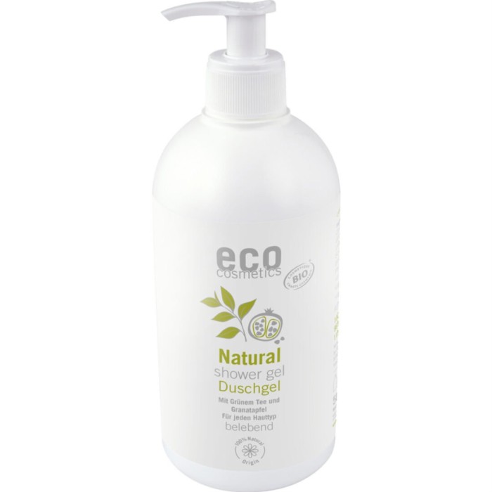 Eco Cosmetics Natural Shower Gel är en duschgel med grönt te och granatäpple. Den uppfriskande duschtvålen har en mild doft och vårdar din hud i duschen.