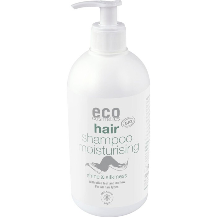 Hair Shampoo Moisturising Shine & Silkiness från Eco Cosmetics är ett fuktighetsgivande hårschampo med olivblad och malva. Passar för torrt och slitet hår.