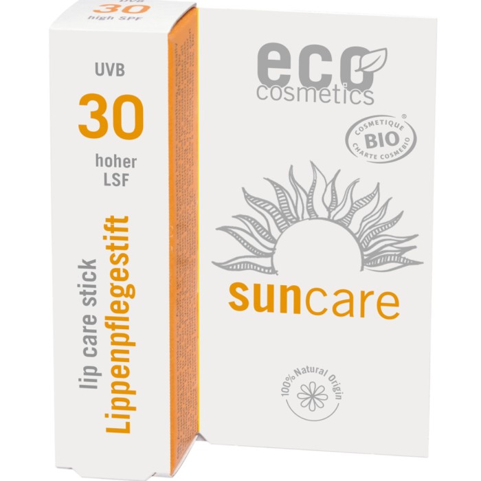 Eco Cosmetics solcerat är ett ekologiskt solskydd för läpparna med fysikaliskt filter. Ceratet innehåller ekologisk havtornolja och ekologisk granatäppleolja för att vårda huden och hjälpa till att bevara fuktighetsnivån i huden. Läppbalsamet med SPF 30 skyddar mot solens uttorkande effekt och mot solens UV-strålar. Ceratet innehåller vårdande oljor som bivax, kakaosmör, sheasmör och kokosolja.