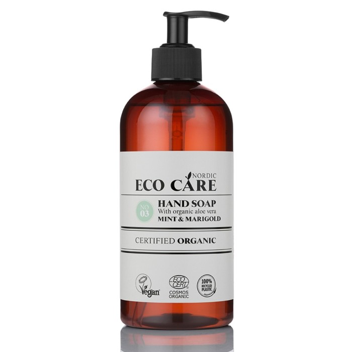 Eco Care Mint & Marigold Handsoap är en ekologiskt certifierad handtvål. Passar bra att använda både i badrummet och i köket. Eco Cares handtvål är mild och håller dina händer rena och återfuktade. Denna tvål har en doft av mynta och ringblomma.