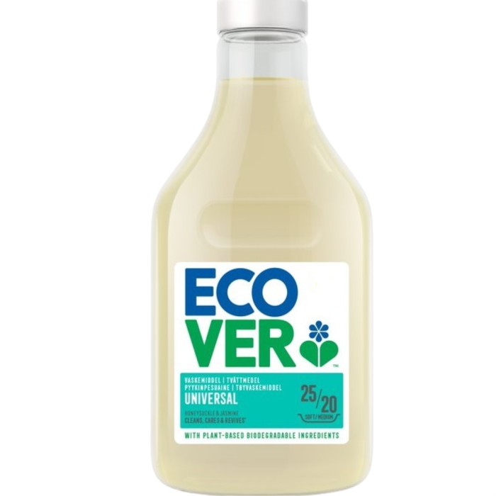 Ecovers flytande tvättmedel Universal Honeysuckle & Jasmine innehåller växtbaserade aktiva ingredienser som hjälper kläderna att hålla längre. Tvättmedlet kan användas till både vit- och kulörtvätt och bekämpar tuffa fläckar och bibehåller färgerna och strukturen på dina plagg. Har en doft av kaprifol och jasmin med en doftnot av lilja och cederträ. Passar även för känslig hud.