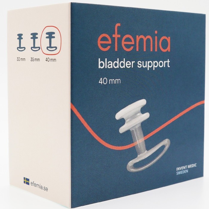 Efemia är tillverkat av ett mjukt, behagligt och flexibelt silikon. Kontinensstödet har en design som säkerställer att den sitter på rätt plats och att den ska kännas behaglig när du rör på dig.