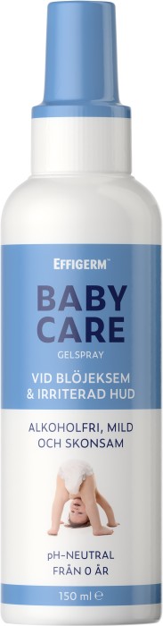 Effigerm Baby Care är en gelspray som både är skonsam och effektiv för röda babystjärtar. Sprayen kan användas på all irriterad babyhud, och på barn från 0 år.