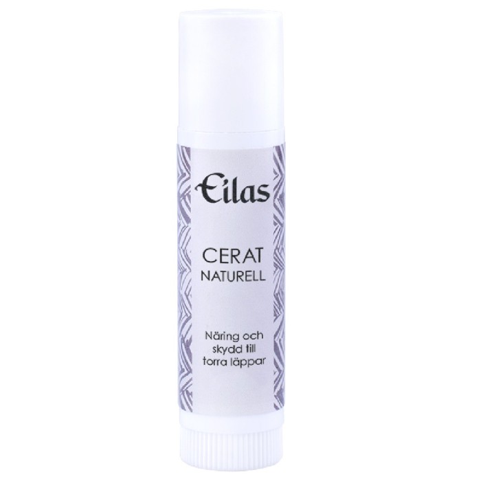 Eilas Cerat Naturell är mjukgörande för torra läppar. Ceratet skyddar och vårdar läpparna med ingredienser som jojobaolja, bivax, kakaosmör och sheasmör.