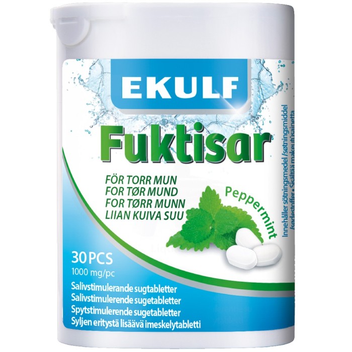 Sötningsmedel (sorbitol E420, isomalt E953, xylitol E967, steviolglykosider E960), äppelsyra E296, natriumcitrat E331, ytbehandlingsmedel (magnesiumstearate veget. E470B), dikalcium fosfat E341, arom (pepparmintsolja), klumpförebyggande medel (kiseldioxid E551).