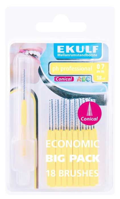 Ekulf PH Professional 0,7 mm är en konisk mellanrumstandborste som gör rent mellan tänderna. Tar skonsamt bort matrester och plack.