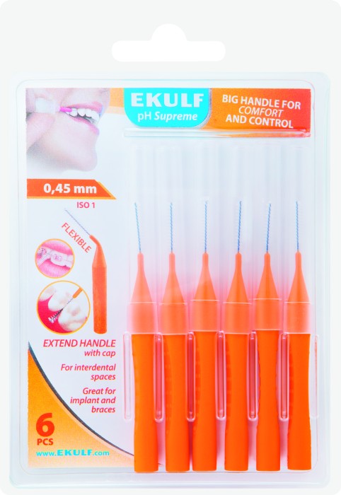 Ekulf PH Supreme 0,45mm är avsedd för de som vill ha lite större grepp på sina mellanrumstandborstar. Borstarna är cylindriskt utformade och har hög kvalité på borst- och rengöringsförmåga.