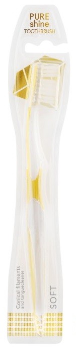 Ekulf Pure Shine är en tandborste med koniska borststrån som lätt når även tändernas mellanrum. Borsten är mycket skonsam för tänder och tandkött och tar bort bakterier och plack. Pure Shine har en ergonomisk design med ett kraftigare handtag för ett ge bra grepp. Tandborsten har mjuka borststrån och en tungskrapa på borsthuvudets baksida.