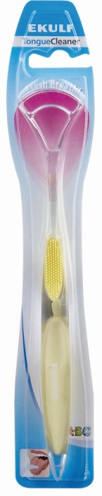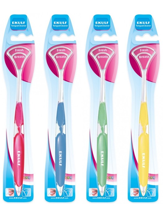 Ekulf TongueCleaner är en tungskrapa som enkelt rengör din tunga. Tungskrapan är något mindre för att lättare komma åt längst bak på tungan. Den mindra storleken gör att kräkreflexen inte stimuleras på samma sätt som den kan göra när man använder större tungskrapor. Handtaget är utformat likt en tandborste med tvåkomponents gummihandtag som ger ett fastare grepp för en säker och mer behaglig tungskrapning.