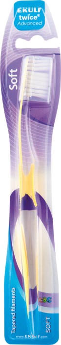Ekulf Twice Advanced är en mjuk tandborste med koniska borststrån som lätt och effektivt når ner i tändernas mellanrum. Tandborsten är skonsam mot tänder och tandkött och tar effektivt bort bakterier och plack.