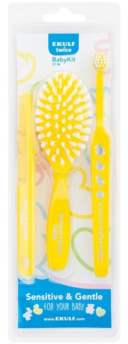 Ekulf Twice Babykit med tandborste, hårborste och kam.