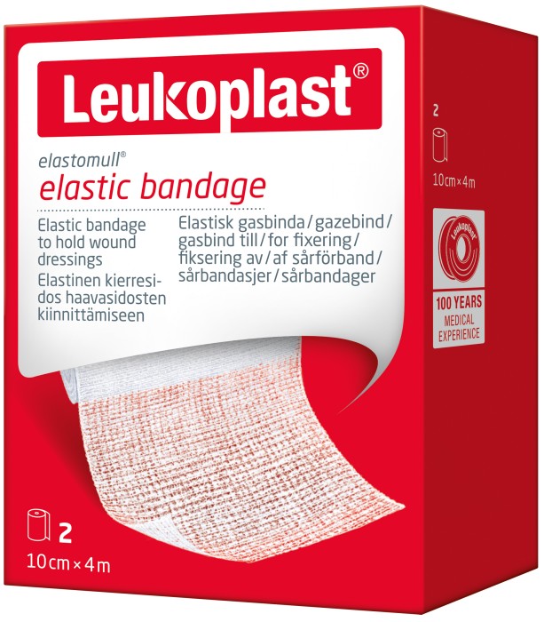 Leukoplast Elastomull 10 cm x 4 m är en elastisk fixeringsbinda som släpper igenom luft. Lindan är bekväm att bära tack vare det höga bomullsinnehållet. Möjliggör god rörlighet och minskar benägenheten att svettas. Används för att fixera exempelvis kompresser på knä, handled och armbåge. Den mjuka lindan andas och känns mjuk mot huden. Fäst lindan med Leukoplast medicinsk tejp.