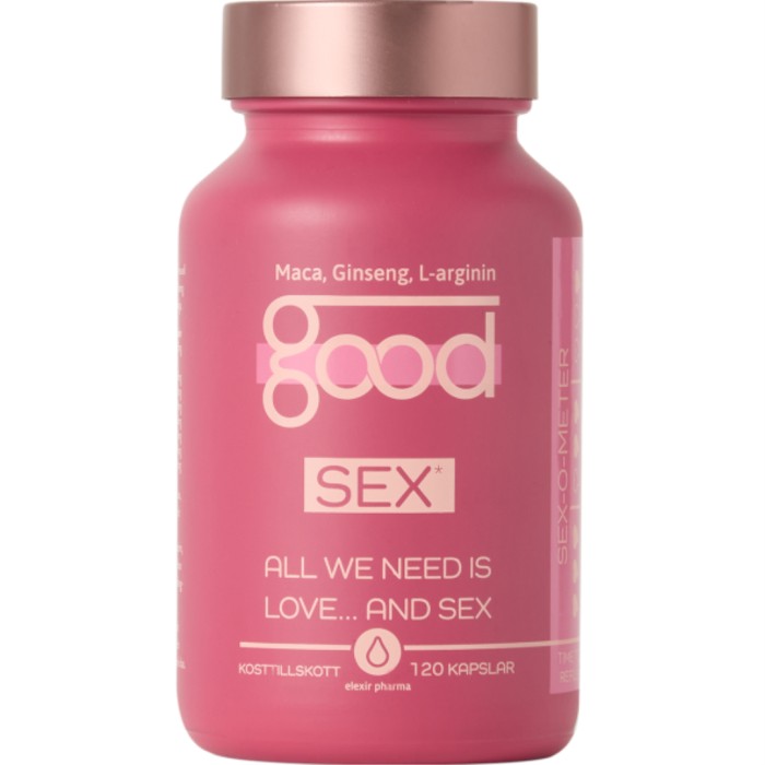 Good Sex från Elexir Pharma är ett kosttillskott som riktar sig till både män och kvinnor. Kostillskottet innehåller extrakt från maca, ginseng, tiggarnöt och damiana samt aminosyrorna L-arginin och L-citrullin.