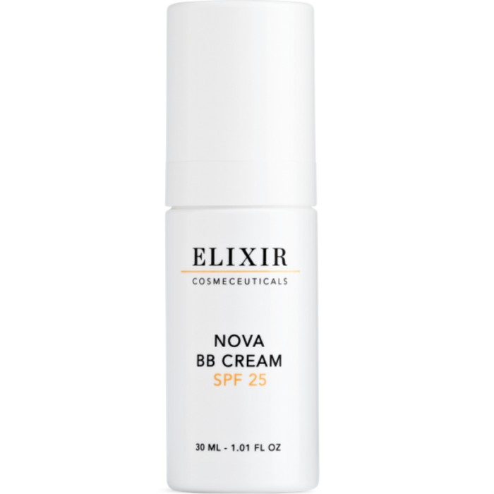 Nova BB Cream SPF 25 Nr. 2 är en lätt dagkräm med mikroniserade färgpartiklar som smälter in naturligt i hudens egen färgton. Denna BB Cream hjälper till att skydda mot UV-strålar och föroreningar från miljön. Krämen innehåller aktiva ingredienser som rödalger och hyaluronsyra som återfuktar och ger lyster till huden, samtidigt som hudens fyllighet och elasticitet främjas. Elixir Cosmeceuticals Nova BB Cream är speciellt framtagen för att korrigera ojämn hudton, rodnad och pigmenteringar. Huden upplevs jämnare med en naturlig fräsch hudton.