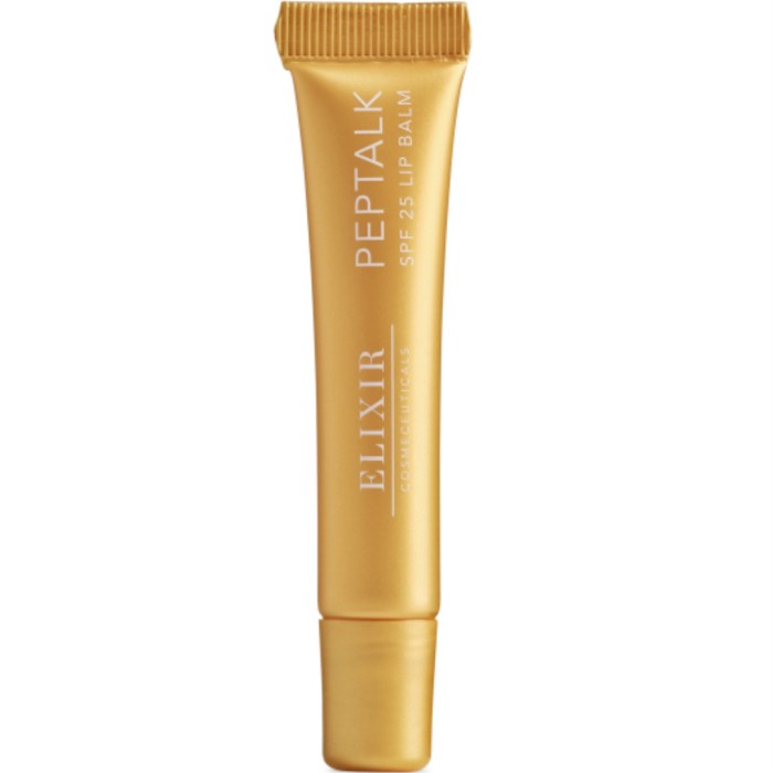 Peptalk Lip Balm SPF25 från Elixir Cosmeceuticals är en läpprodukt för dagligt solskydd. Detta lip balm återställer läpparnas fukt, fyllighet och smidighet samtidigt som det ger ett UV-skydd. Innehåller aktiva ingredienserna, inklusive peptider, hyaluronsyra, sheasmör och naturliga oljor, som verkar omedelbart mjukgörande, återfuktande och lätt kylande.
