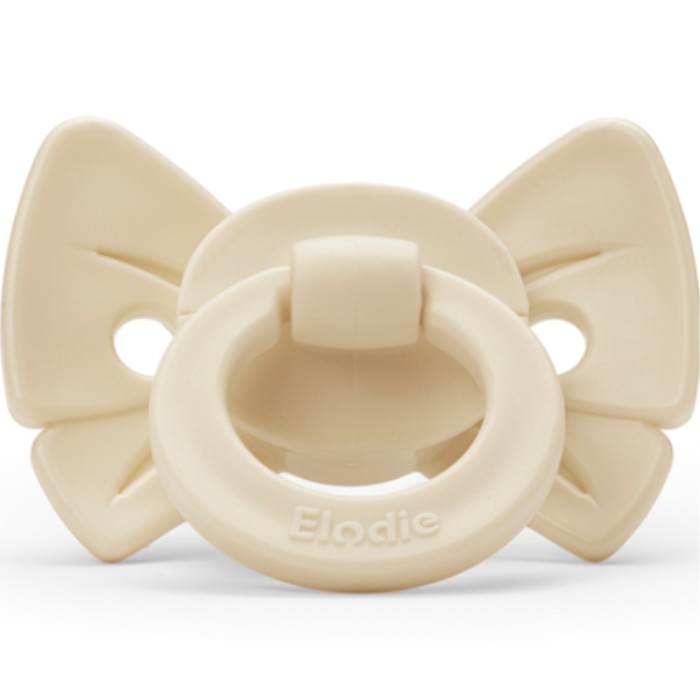 Elodie Binky Bow är en napp med en rosettformad sköld, en design som är unik för Elodie. Nappen finns i färgnyanser som matchar många andra produkter i Elodies sortiment. Nappen har en anatomisk sugdel i silikon som är lämplig för barn från 3 månader. Skölden har trippla ventilationshål och är lätt konkav vilket gör att luft hela tiden cirkulerar runt barnets mun och hjälper till att undvika hudirritation. Nappen kan steriliseras i kokande vatten. (Användarinstruktioner bifogas.)