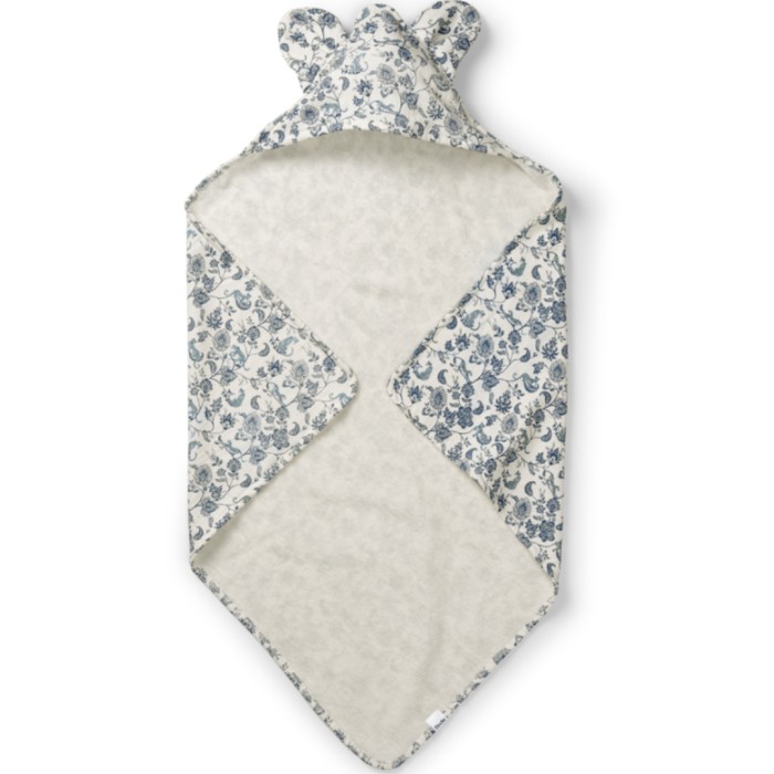 Elodie Hooded Towel är en badhandduk för små barn, som med sina gulliga detaljer och sitt härliga material nog blir en favorit i många badrum. Svep in din nybadade bebis i denna mjuka handduk med högabsorberande frotté på insidan och mjuk och gosig velour på utsidan. Den fyrkantiga formen gör att du kan svepa in din bebis tätt som i en kokong. Huvan passar även lite större huvuden så med tiden blir det barnets egen favortihandduk och den kan användas upp till ca 3 års ålder. Använd den hemma, vid poolen eller på stranden. Mått 80 x 80 cm.