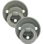 Binkie Bundle-napparna har en dämpad färgskala och den runda formen ger dem en retro-inspirerad look. Skölden har dubbla ventilationshål och en lätt utåtböjd form som gör att luft hela tiden cirkulerar runt barnets mun och hjälper till att undvika hudirritation.