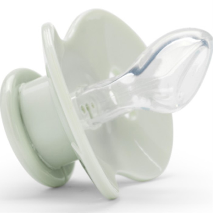 Nappens sköld har ventilationshål som låter luft cirkulera runt barnets mun och minskar risken för hudirritationer. Alla kanter är mjukt rundade för att inte skava mot barnets hud.