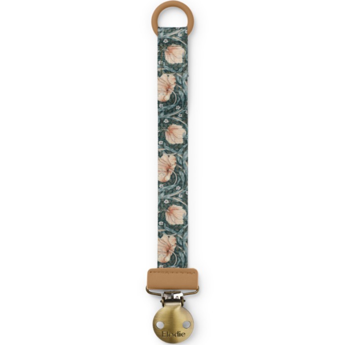 Napphållaren från Elodie är en praktisk liten hjälpreda i vardagen med små barn. Du fäster metallspännet i barnets kläder och silikonringen på nappen - och när nappen trillar ur bebisens mun är napphållaren där och fångar upp den. Spännet är tillverkat av rostfritt, nickelfritt stål. Ringen är gjord av livsmedelsklassad silikon, och själva bandet är gjort av återvunnet material och har dekorativa detaljer i veganskt läder.