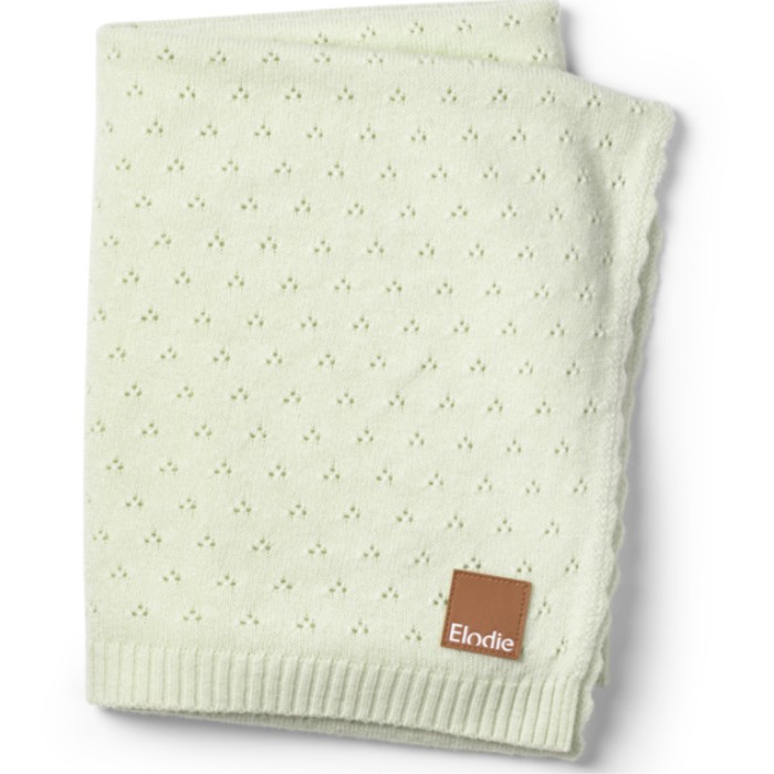 Elodie Pointelle Filt är en barnfilt i mjuk Pointelle-stickning. Denna söta filt är gjord av akryl, är ljust grön i färgen och har fått namnet Gelato Green.