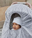 Elodies regnskydd för barnvagn är lätt att montera och är kompatibelt med liggvagnar, sittvagnar och sulkys. Regnskyddet håller all slags nederbörd borta från barnet i vagnen och har ett nedvikningsbart "vindfönster" i genomskinlig plast. Fästknappar vid sido-sömmen gör det enkelt att stänga vid kraftigt regn -och blåsväder. Regnskyddet förvaras i en egen väska som kan fästas på vagnen, så att du alltid är redo om himlen skulle öppna sig.