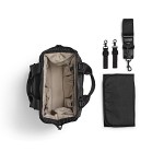 Designad med en styv metallbåge som håller den vidöppen för smidig åtkomst till allt innehåll. Gör blöjbyten i farten enklare än någonsin.