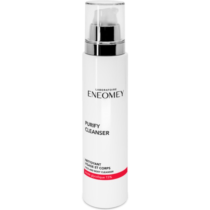 Eneomey Purify Cleanser är en gelrengöring med 15% glykolsyra, som kan användas till både ansikte och kropp. Gelen djuprengör huden och ger en jämnare, klarare ton och struktur.
