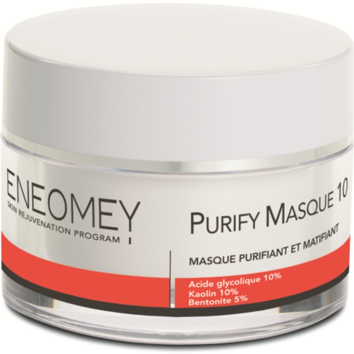 Eneomey Purify Masque 10 är en djuprengörande lerpeeling som innehåller 10% glykolsyra. En produkt framtagen för att komma så nära en professionell kemisk peeling du kan hemma. Innehåller kaolinlera och bentonitelera för en lugnande effekt. Passar alla hudtyper, framför allt fet hud.