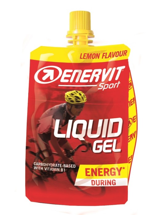 Enervit Sport Liquid Gel med citronsmak är en energiprodukt med kolhydrater och vitaminer.