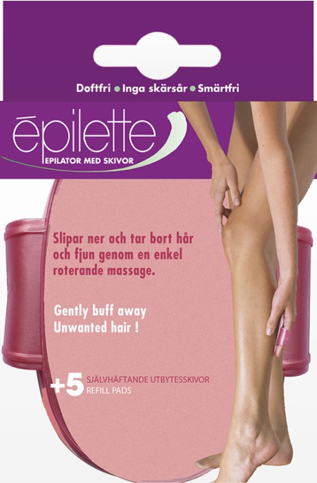 Innehåller Epilette + 5 självhäftande utbytesskivor.
