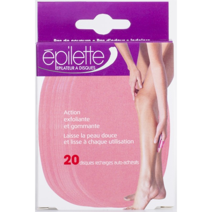 Förpackningen innehåller 20 st utbytesskivor till Epilette. (Handtag säljs separat.)