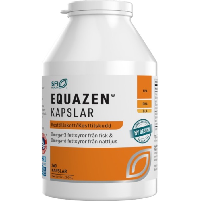 Equazen är en sammansättning av Omega-3 fettsyrorna EPA och DHA från fet fisk och Omega-6 fettsyran GLA från nattljusolja. Equazenär ett enkelt och bekvämt sätt att få i sig fettsyrorna.