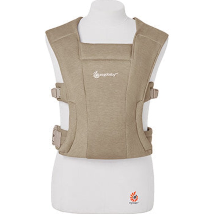 Ergobabys Embrace bärsele är tillverkad i en mjuk textil som omsluter barnet nära föräldern och ger stöd. Den har en smidig knäppning utan knytning eller överblivet tyg, och den är bekväm att bära med ett midjebälte som ger bra stöd, och stretchiga axelband som korsas.