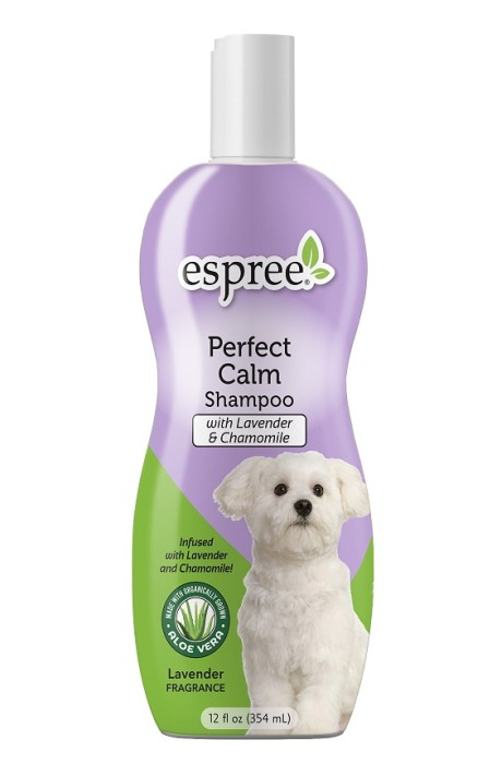 Espree Perfect Calm är ett djurschampo med lavendel och kamomill. Lavendel har en doft som kan lugna sinnet och dämpar också obehaglig lukt, samtidigt som den hjälper till att balansera talgproduktionen och kan ha en uppmjukande effekt. Kamomill hjälper att lugna djuret och stöttar cellernas återbildning i huden och hårstrået.