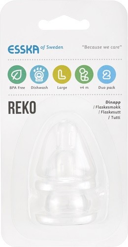 Esska Dinapp Reko är en rund dinapp i mjuk silikon som passar till Reko Diflaska. Dinapp LARGE har ett stort hål för välling och tjockare tillägg.