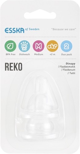 Esska Dinapp Reko är en rund dinapp i mjuk silikon som passar till Reko Diflaska. Dinapp MEDIUM har ett medium hål för tunnare tillägg.