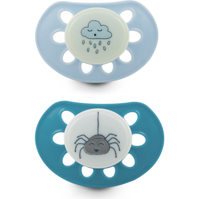 Esska Classic Glow är en napp med självlysande knopp, något som är praktisk när barnet tappar nappen på natten. Nappen är lätt att hitta i mörkret utan att du behöver tända lampan.
