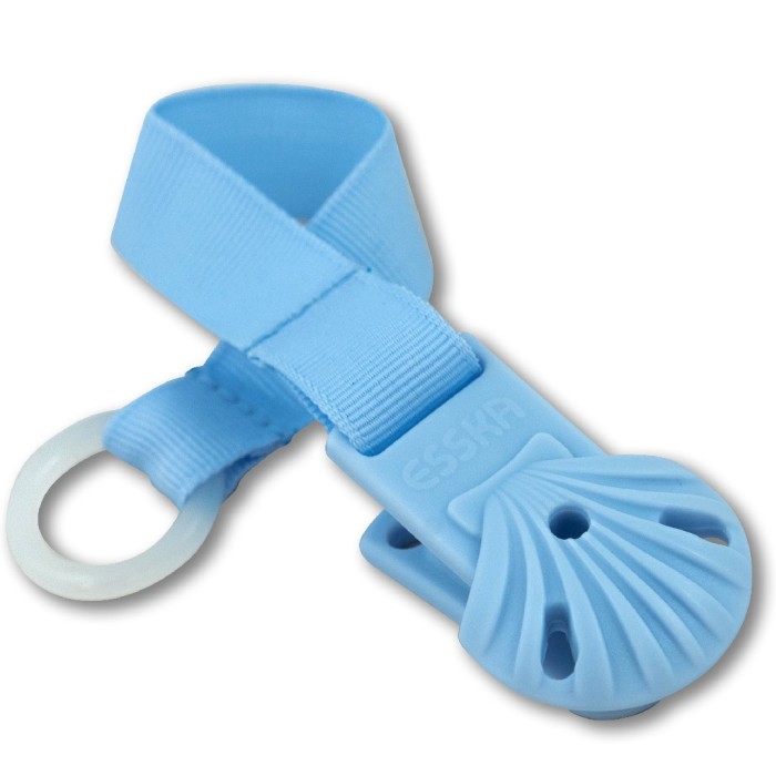 Esskas napphållare hjälper er att slippa missöden med borttappade nappar. Den praktiska napphållaren passar alla Esska-nappar med knopp, och många andra nappar med ring.