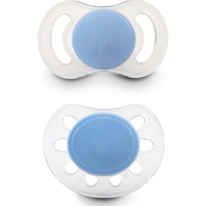 Newborn Kit innehåller 1 st Happy Mini-napp med symmetrisk sugdel och 1 st Classic Mini med anatomisk sugdel.