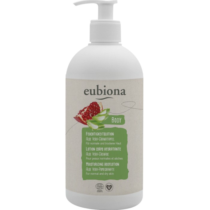 Eubiona Moisturizing Bodylotion Aloe Vera & Pomegranate är en naturlig bodylotion med återfuktande aloe vera och granatäpple som effektivt vårdar huden. Lotionen går snabbt in i huden och lämnar ingen fet hinna. Utan syntetisk doft, färgämnen och konserveringsmedel.