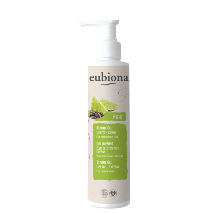 Eubiona Styling Gel Lime Peel & Caffeine är ett naturligt hårgele som ger håret en naturlig stadga och gör det lättare att styla.