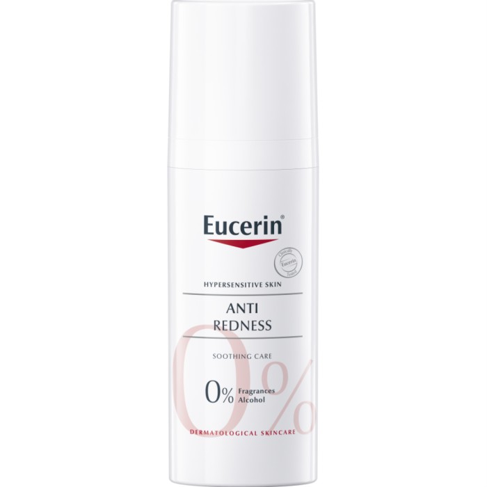 Eucerin AntiRedness Soothing Care är en återfuktande ansiktskräm som minskar och lindrar rodnad, irritation och sveda omedelbart och förhindrar rodnad långsiktigt. Krämen har en lugnande anti-stickande och anti-irriterande effekt på huden, tack vare de aktiva ingredienserna: SymSitive som är speciellt framtagen för hyperkänslig hud och lakritsrotextrakt som dämpar rodnad effektivt. Krämen hjälper till att reducera stramhet dygnet runt och förbättrar hudens tillstånd.