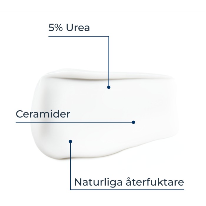 Aqua, Glycerin, Urea, Caprylic/Capric Triglyceride, Pentaerythrityl Tetraisostearate, Cetyl Alcohol, Glyceryl Stearate, Sodium Lactate, Hydroxypropyl Starch Phosphate, CeramideNP, Lactic Acid, Tocopherol, Cholesterol, Alanine, Carnitine, Glycine, Sodium PCA, Arginine HCL, Phytosphingosine, Potassium Cetyl Phosphate, Oleic Acid, Xanthan Gum, 1,2-Hexanediol, Phenoxyethanol, Sodium Chloride Produktens ingredienslista kan uppdateras över tid. Konsultera alltid ingredienslistan som finns på den köpta produktens förpackning.