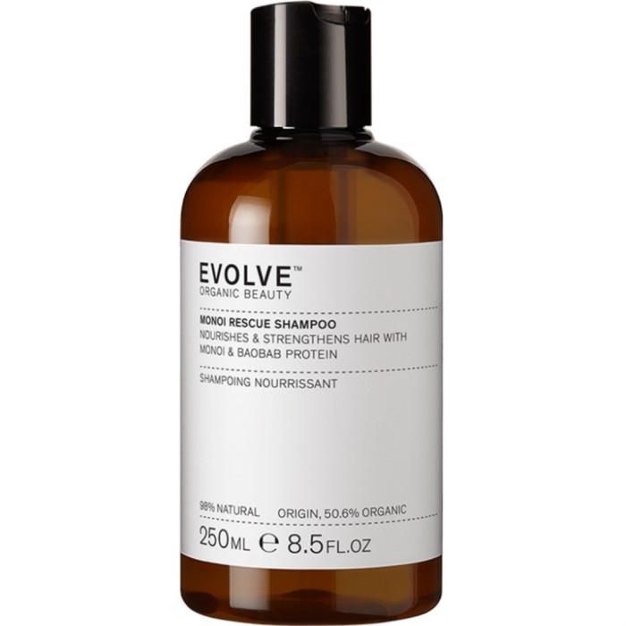 Evolve Monoi Rescue Shampoo är ett schampo framtaget för att förbättra tillståndet hos torrt, skadat och färgbehandlat hår. Den naturliga formuleringen verkar skonsamt förbättrande på hårbotten och går djupt in i hårstråna för att återfukta och mjukgöra. Ger håret näring och fukt och gör det mjukt med en ökad glans och lyster - och har en härlig doft.