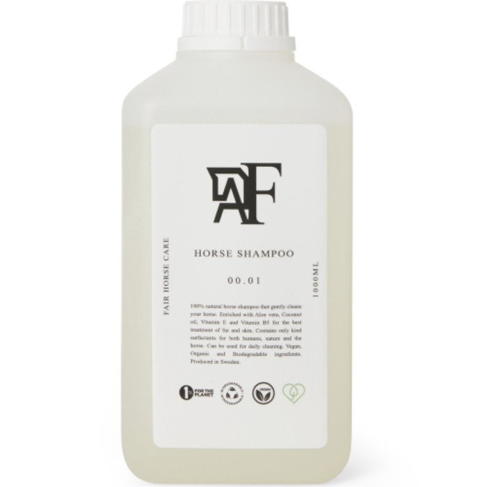 Fair Horse Care hästschampo innehåller skonsamma ytaktiva ämnen. Passar för dagligt bruk.