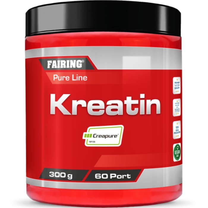 Fairing Kreatin (Creapure) är ett kreatinmonohydrat bestående av 100% Creapure®. Kreatinmonohydrat kan användas för explosiva, kortvariga maximala ansträngningar som t ex. styrkelyft, sprint, styrketräning osv. Fairings Kreatin Monohydrat består av Creapure® som tillverkas genom en patenterad process.