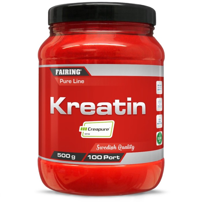 Fairing Kreatin Monohydrat bestående av 100% Creapure®. Kreatinmonohydrat används med fördel till explosiva, kortvariga maximala ansträngningar som till exempel styrkelyft, sprint, styrketräning mm.