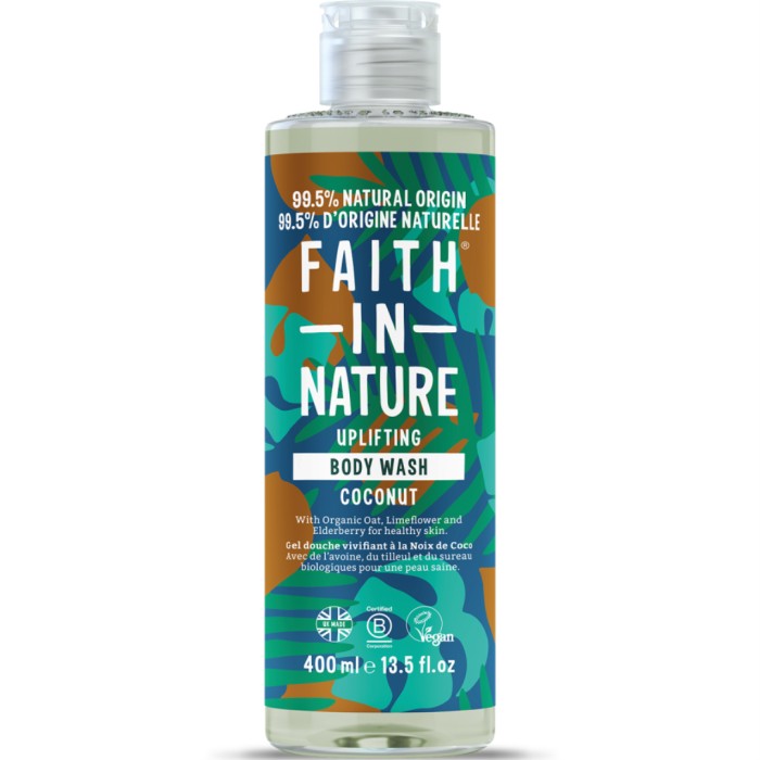 Faith in Nature Body Wash Coconut är en duschgel med en hög andel naturliga ingredienser. Denna duschtvål kan också användas till ett bubbelbad.
