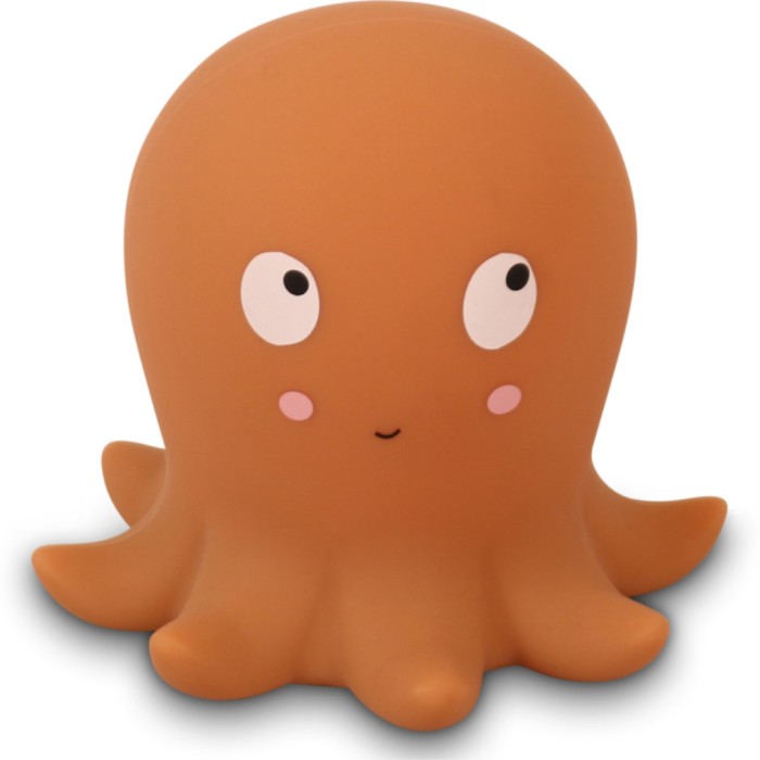 Bläckfisken Otto är en riktigt söt LED-lampa i en fin dammig orange färg. Lampan ger ett varmt och behagligt ljus som skapar en mysig stämning i barnets rum vid läggdags. Lampan är också perfekt för skötbordet och lyser mjukt när du ammar eller ger flaskan på natten. Ge Otto en liten puff och han kommer att lysa upp i många olika färger.
